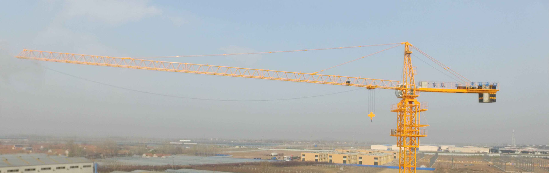 該機為平頭水平臂架、小車變幅、上回轉液壓頂升式起重機。最大起重量為6t;最大工作幅度為55米,額定起重力矩為:630KN.m。